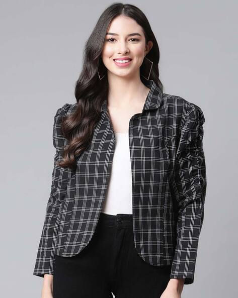 Cottinfab Women Black White Pure Cotton Checked Tailored JacketJacketsMachine washPure cottonProduct Code: 463525834_black