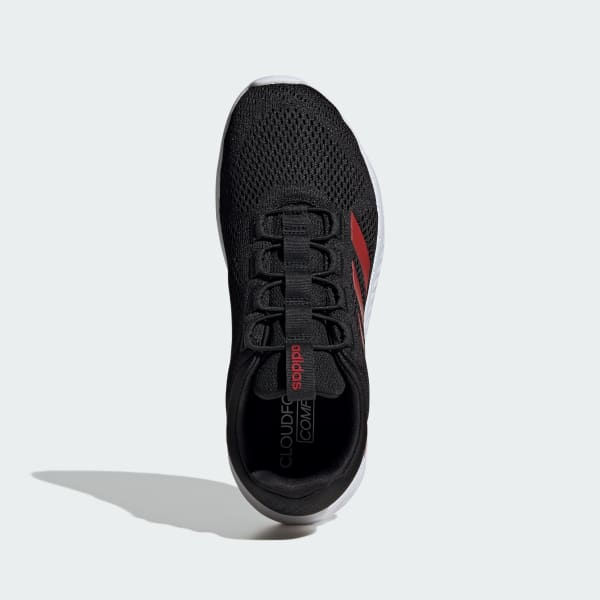Stay comfortable from morning to evening with these Adidas Cloudfoam Comfy Shoes. The lightweight Cloudfoam cushioning provides superior comfort, while the stretchy laces make for easy on and off. The sleek and versatile design makes them easy to incorporate into your wardrobe, pairing well with everything from workout shorts to jeans. Features include a regular fit, elastic lace closure, textile and synthetic upper, Cloudfoam cushioning, textile lining, and synthetic outsole. The shoe is available in various colors, including Core Black / Better Scarlet / Cloud White.