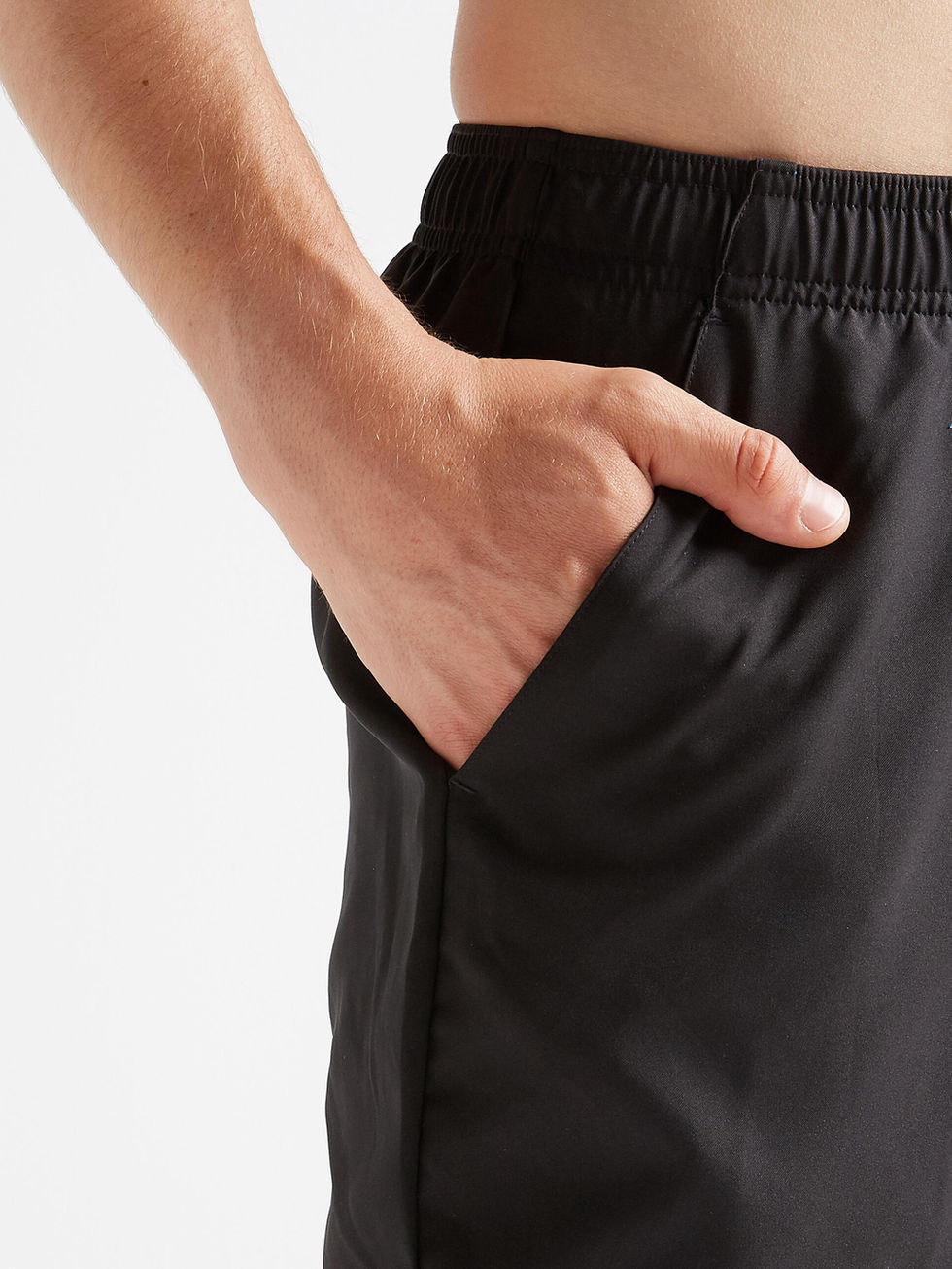 The Men's Gym Shorts Polyester FST 100 Black is designed for gym and fitness enthusiasts. Made from a lightweight and breathable polyester fabric, these shorts provide a full range of motion and keep you dry and comfortable during your workout. The FST 100 technology ensures that the shorts are quick-drying and moisture-wicking, making them perfect for high-intensity exercises. With a regular fit and an adjustable waistband, these shorts provide a secure and comfortable fit. Additionally, the multiple pockets provide ample storage for your essentials, such as your phone, keys, and wallet. Whether you're doing squats, lunges, or deadlifts, these shorts are designed to keep up with your active lifestyle. The polyester fabric is also easy to care for and can be machine washed and dried. The Men's Gym Shorts Polyester FST 100 Black is a great choice for anyone looking for a reliable and comfortable pair of gym shorts. They are perfect for a variety of exercises and are designed to keep you cool and dry. The shorts are also a great value for the price, making them a great addition to any fitness enthusiast's wardrobe. The Decathlon brand is known for its high-quality products, and these shorts are no exception. With their comfortable fit and advanced technology, they are a great choice for anyone looking to take their workout to the next level.
