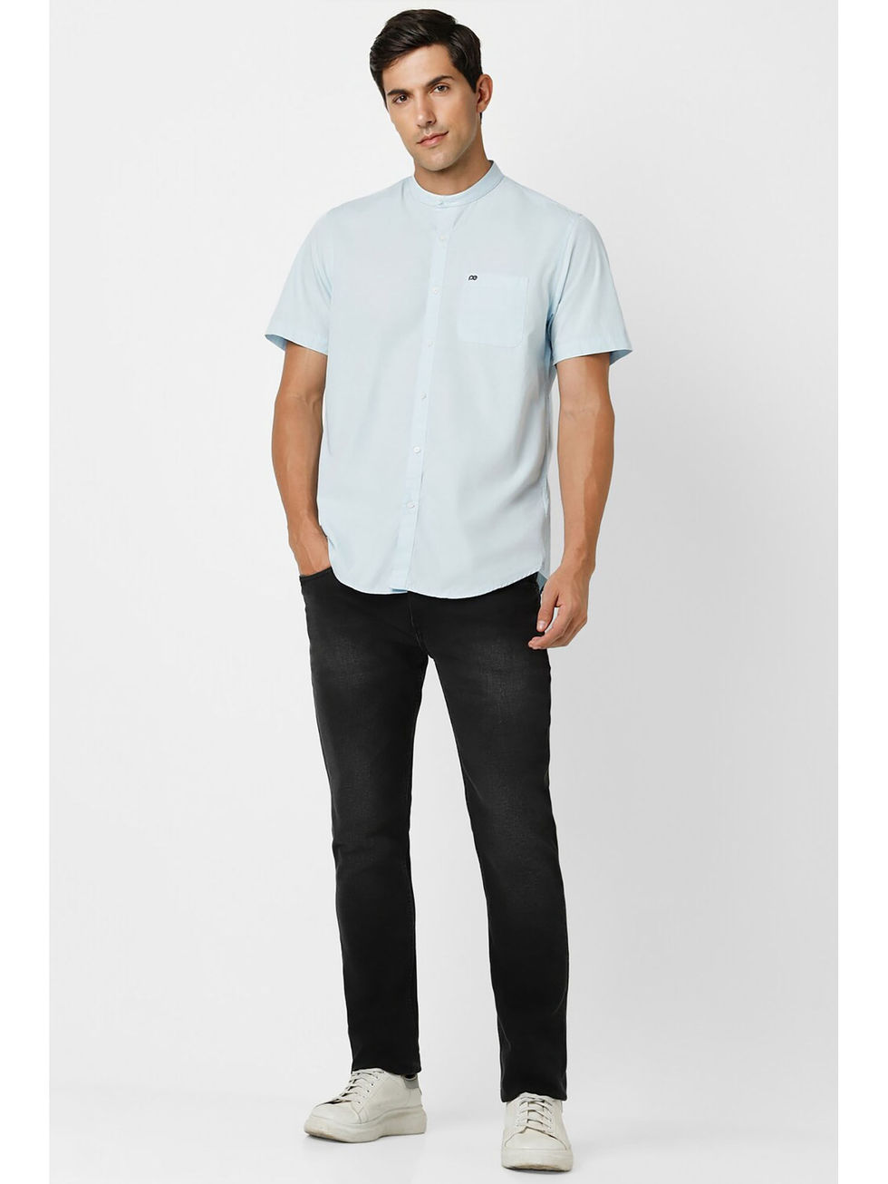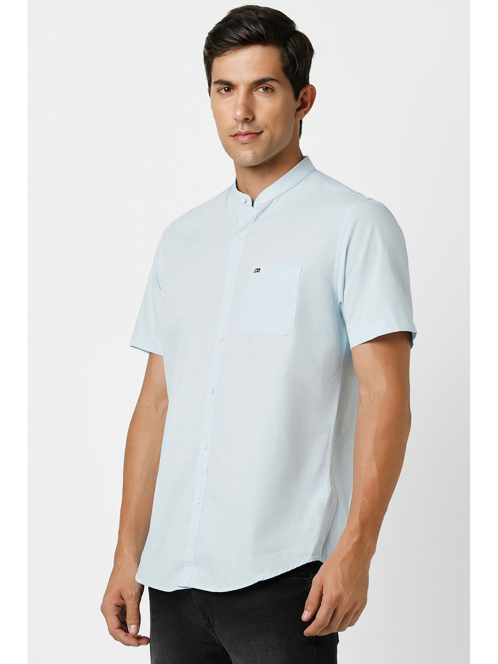 Add some style with this blue casual shirt from Peter England. Tailored in a slim fit, this stylish shirt is designed with half sleeves and a mandarin neck. Complete the look with a pair of jeans and trendy loafers. This casual shirt is made from cotton and can be dressed up for a variety of occasions.