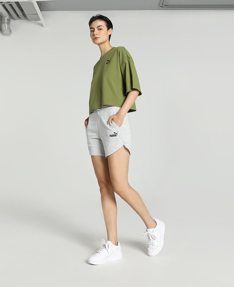 The Puma Women's High Waisted Shorts are designed to keep you cool and comfortable. Made with at least 20% recycled material, these shorts feature a 5-inch inseam, side seam pockets, and a ribbed waistband with an external drawcord. The high-waisted design creates a flattering silhouette, while the regular fit ensures a comfortable wear. Pair these shorts with a chambray shirt for a dressed-up look or with a graphic tee for a casual outing. The Puma No. 1 Logo on the left thigh adds a touch of sporty style. These shorts are perfect for warm weather, outdoor activities, or everyday wear. With their eco-friendly material and versatile design, the Puma Women's High Waisted Shorts are an excellent addition to your wardrobe. They are available in various sizes and colors, ensuring you find the perfect fit. Whether you're lounging around or engaging in sports, these shorts will keep you feeling confident and comfortable. The high-quality material ensures durability, and the adjustable waistband provides a secure fit. The Puma Women's High Waisted Shorts are a great choice for anyone looking for a reliable and stylish pair of shorts.